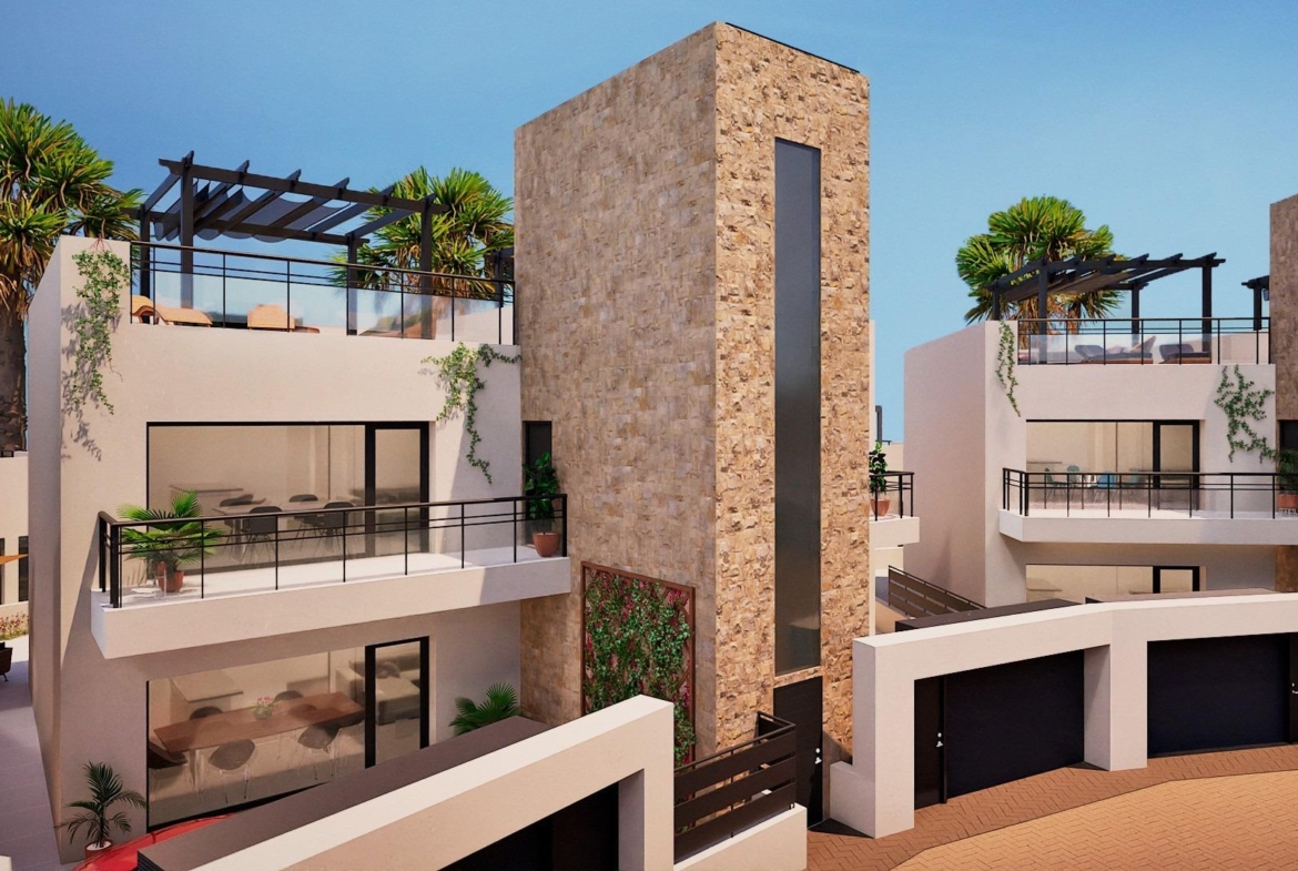 NEWLY BUILT BUNGALOWS IN FUENTE ALAMO, MURCIA Newly built residential complex of bungalows in Fuente Álamo, Murcia. Ground floor bungalows with private gardens and first floor bungalows with private solariums. This location offers an exceptional natural environment, far from the hustle and bustle of big cities and the tourist pressure of the coast. Furthermore, we are committed to working from a sustainable development perspective, minimising our environmental impact and maximising integration with the local community. Here, your dreams of a peaceful and sustainable lifestyle become a reality. Imagine waking up every morning in a stunning natural setting, surrounded by serene landscapes and the unique beauty of the Murcian countryside. New construction projects prioritise energy efficiency, the use of environmentally friendly materials and harmonious integration with the rural environment. From property design to development planning, we strive to reduce our carbon footprint and promote responsible practices in all our operations. Development prioritising energy efficiency and community integration to create high-quality homes in harmony with the natural environment. Complete installation of ducted air conditioning, hot/cold. Video intercom system. Colour-lacquered security entrance door with lock and anti-vandal security fittings. Cupboards with storage space, lined inside, lacquered in white. Kitchen furniture with appliances included. Hot water by aerothermal energy. Electric blinds. Pergolas in solariums. Photovoltaic solar panel system with storage tank. Possibility of modifications to the property, subject to approval by both parties. Fuente Álamo de Murcia is a town and municipality in the Region of Murcia, in southern Spain. It is located 22 km north-west of Cartagena and 35 km south-west of Murcia. The town is located in the Mar Menor basin, surrounded by the Algarrobo, Los Gómez, Los Victorias and Carrascoy mountain ranges. The water from these mountains flows down into the Rambla de Fuente Álamo and then into the Mar Menor. Fuente Álamo is 30 minutes from Murcia – Corvera airport. Nearest shops 6 km away. 1103