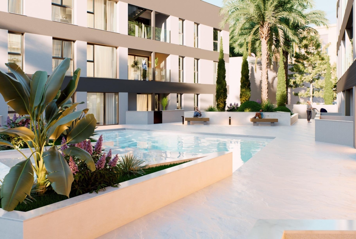 New Build Apartments for Sale in Lo Pagan (San Pedro del Pinatar) Near the Beach Modern Mediterranean Living in Lo Pagan Discover these stylish new build apartments for sale in Lo Pagan, a charming coastal area within San Pedro del Pinatar on the beautiful Costa Calida. Located in the well known neighborhood of Los Cuarteros, this residential development offers a privileged lifestyle just 500 meters from the beach and close to all essential services, restaurants, shops and leisure areas. Lo Pagan is famous for its relaxed seaside atmosphere, the calm waters of the Mar Menor and more than 300 days of sunshine each year. The area combines traditional Spanish charm with modern amenities, making it an ideal destination for both permanent living and holiday homes. Contemporary Apartments with Terraces and Private Solariums The development offers a selection of ground floor and middle floor apartments with spacious terraces, as well as exclusive penthouses with private rooftop solariums. The solariums include a pergola and barbecue area, creating the perfect setting for outdoor dining and relaxing under the Mediterranean sun. Each property has been designed to combine contemporary architecture with warm Mediterranean style. The open plan kitchen integrates seamlessly with the living and dining area, creating bright and comfortable living spaces. Large terraces extend the indoor areas and provide the perfect place for outdoor breakfasts or evening gatherings. Bedrooms feature built in wardrobes and the modern bathrooms are fully equipped, offering comfort and elegant finishes throughout the home. Quality Features and Community Facilities These homes are built with attention to detail and include high quality specifications to ensure comfort and efficiency. Fully furnished kitchen equipped with appliances Fully fitted bathrooms with modern finishes Ducted air conditioning fully installed Private parking space and storage room included with every property Residents can also enjoy excellent communal facilities including a swimming pool surrounded by relaxation areas and a fully equipped gym, ideal for maintaining an active lifestyle all year round. Excellent Location on the Costa Calida This development enjoys a strategic location close to beaches, golf courses and key destinations along the coast. Playa de Villananitos 0.5 km Real Club Nautico de Lo Pagan 0.5 km Lo Romero Golf 10 km Murcia International Airport 40 km Cartagena 35 km The nearby beaches of the Mar Menor such as Playa de La Puntica are known for their fine sand calm waters, ideal for swimming, sailing and water sports. Your New Home by the Sea Awaits Enjoy sunshine, beaches and a vibrant coastal lifestyle in one of the most sought after areas of the Costa Calida. Contact us today for more information about these new build apartments in Lo Pagan and secure your place by the sea. 1103